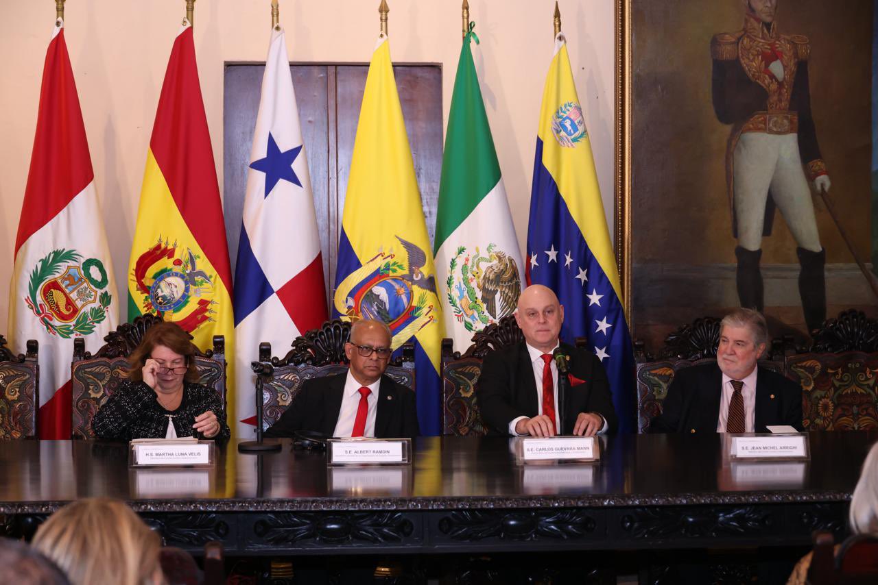 El Ministerio de Relaciones Exteriores, la Sociedad Bolivariana de Panamá y la Organización de los Estados Americanos (OEA) celebraron este martes una sesión dedicada al Congreso Anfictiónico de 1826 y al desarrollo del sistema interamericano, en un encuentro realizado en el Salón Bolívar de la Cancillería.