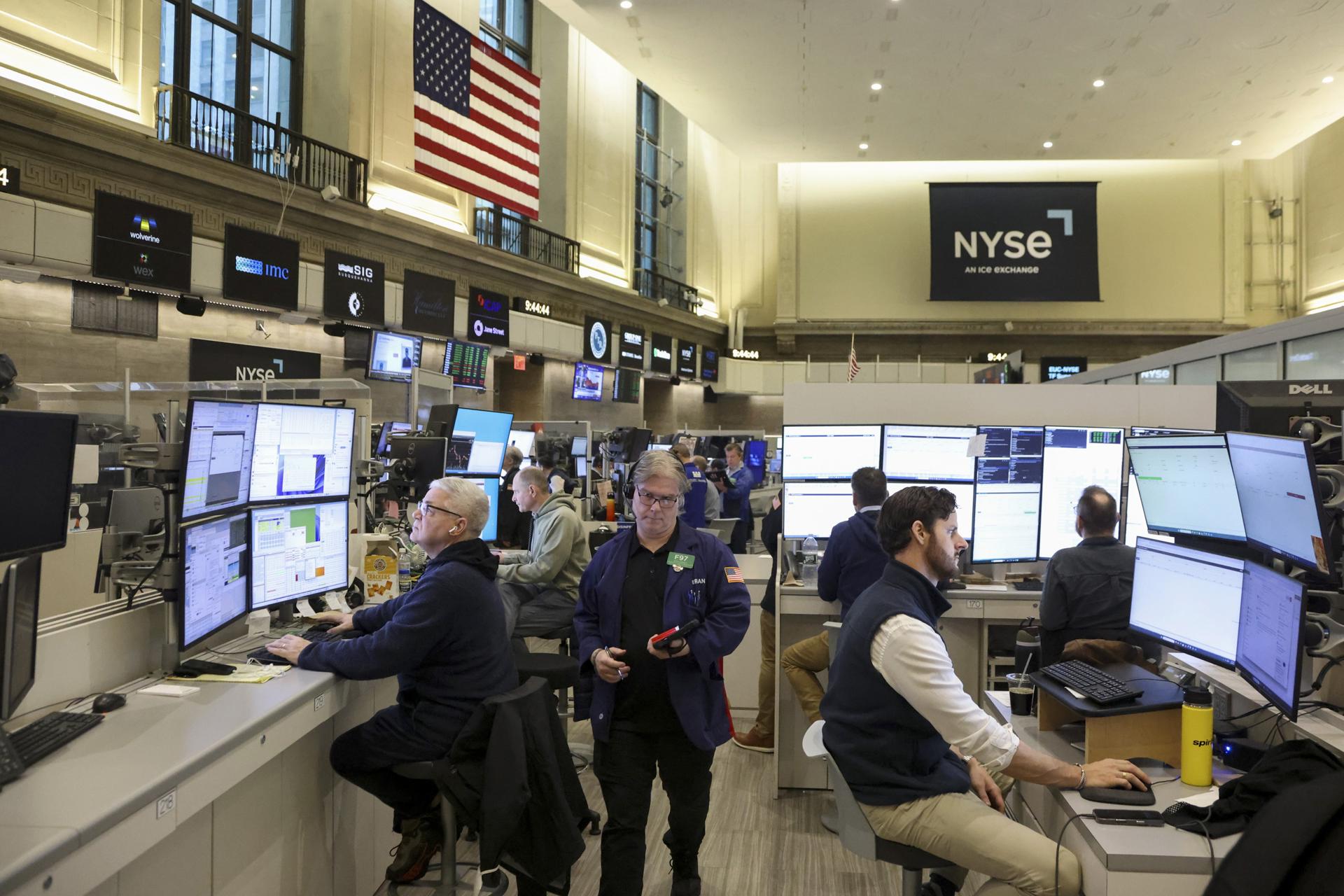 Corredores de bolsa trabajan en Nueva York (EE.UU.). EFE/Justin Lane