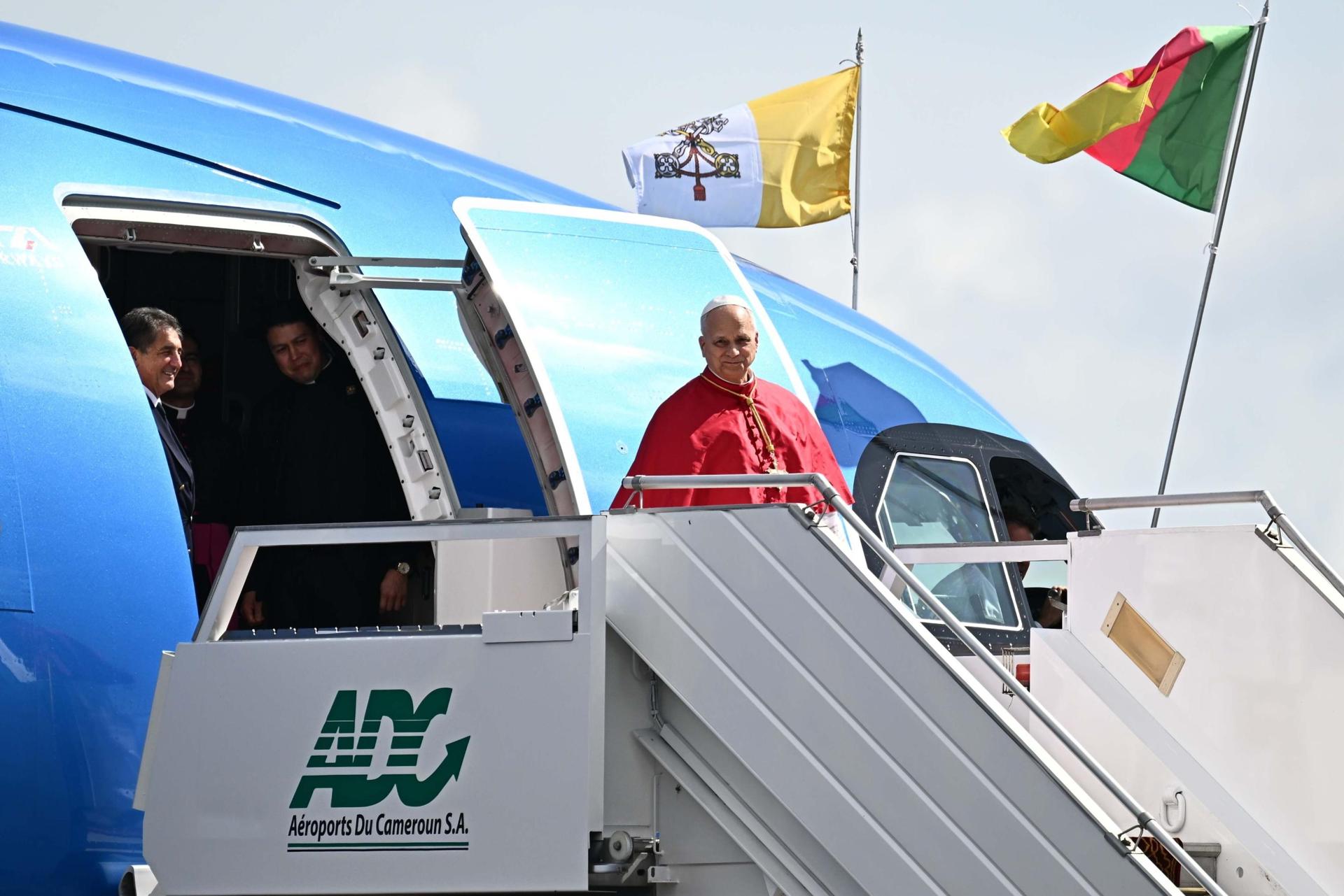 El Papa León XIV desembarca del avión papal a su llegada al Aeropuerto Internacional Yaounde Nsimalen en Yaundé, Camerún, 15 de abril de 2026. El pontífice se encuentra en la segunda etapa de un viaje apostólico de 11 días a África. (Papa, Camerún) EFE/EPA/LUCA ZENNARO