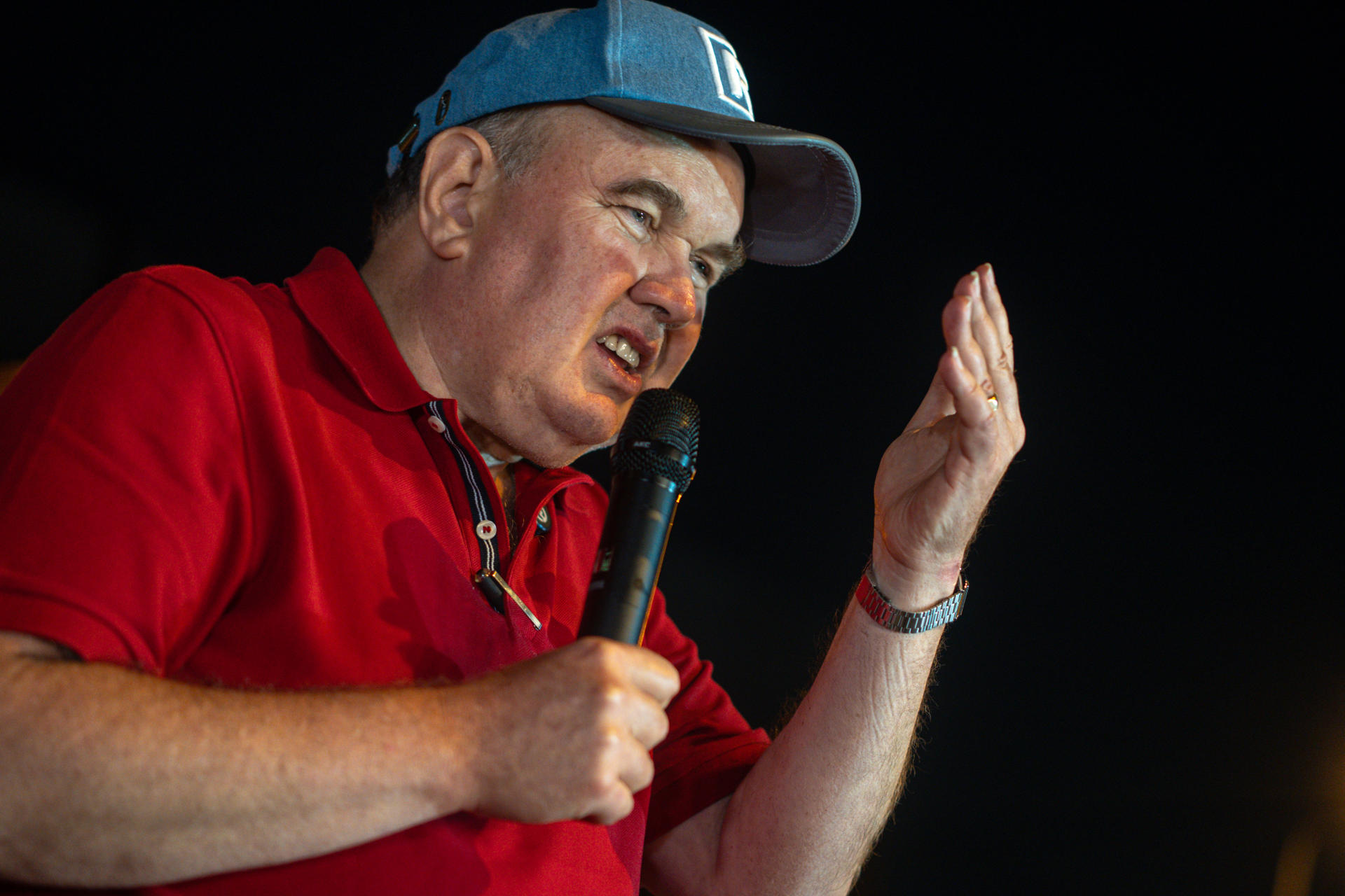 El candidato presidencial peruano ultraconservador Rafael López Aliaga habla durante una manifestación este martes, frente a las instalaciones del Jurado Nacional de Elecciones (JNE) en Lima (Perú). EFE/ John Reyes