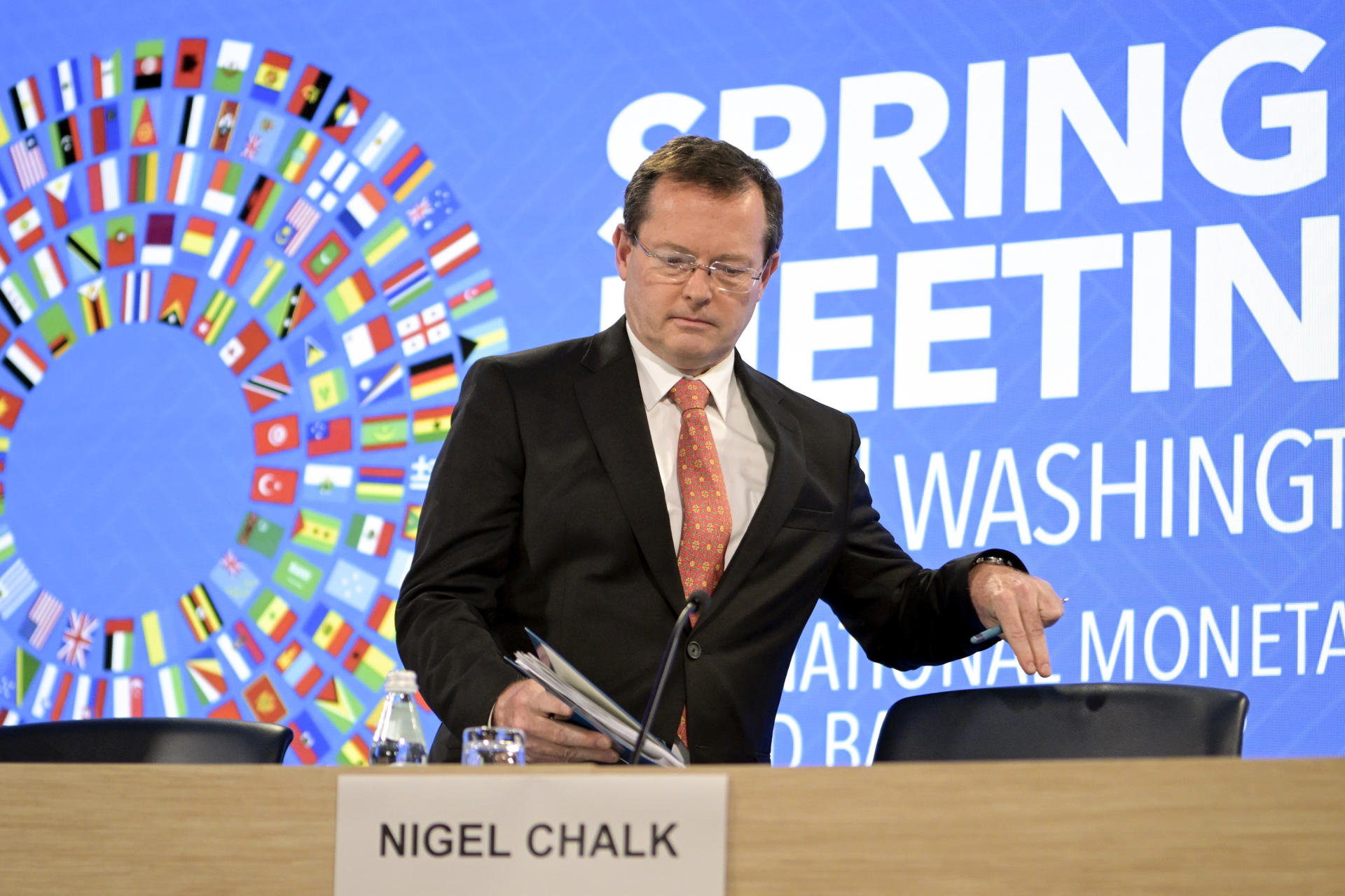 USA9976. WASHINGTON (ESTADOS UNIDOS), 17/04/2026.- El director del departamento del Hemisferio Occidental del FMI, Nigel Chalk, asiste a la presentación del informe regional en el marco de las reuniones de primavera de ese organismo y el Banco Mundial este viernes, en Washington (Estados Unidos). EFE/ Lenin Nolly